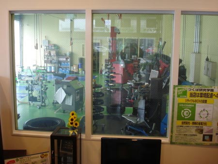 タイヤの取り付けや車のメンテナンス作業を近くで見ることができるので、お子さまは興味深々!