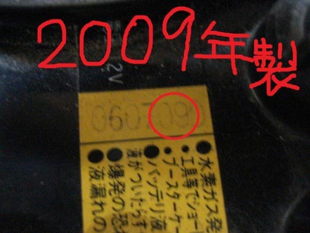印刷面が読みづらくてスミマセンが、2009年製のバッテリーだったことです。