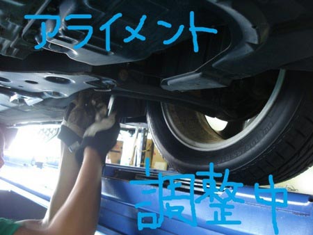 偏磨耗が見受けられたので、アライメント測定・調整のご提案をさせて頂きました。
