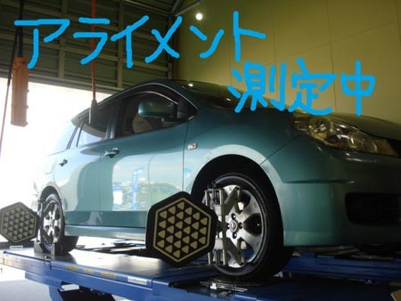 日産 ウイングロードでお越しのお客様に、アライメントの測定・調整をさせて頂きました!