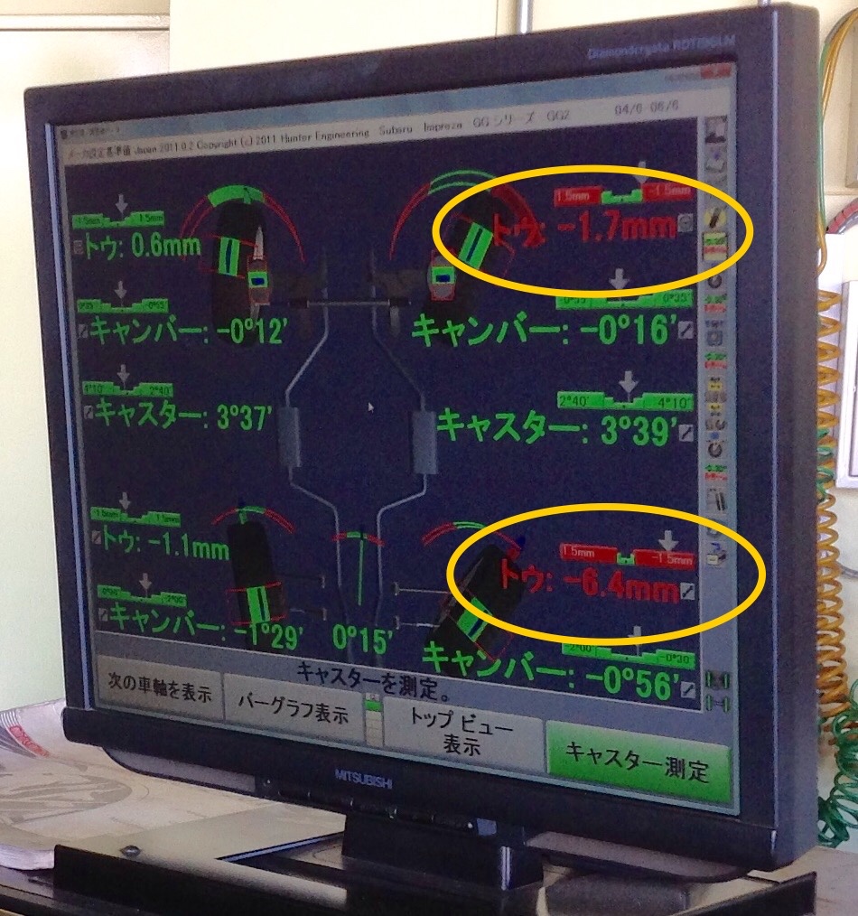 インプレッサ(GG2型)のアライメントを調整させていただきました