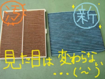 今、車についているエアコンフィルターの状態を実際にご覧いただけますので、