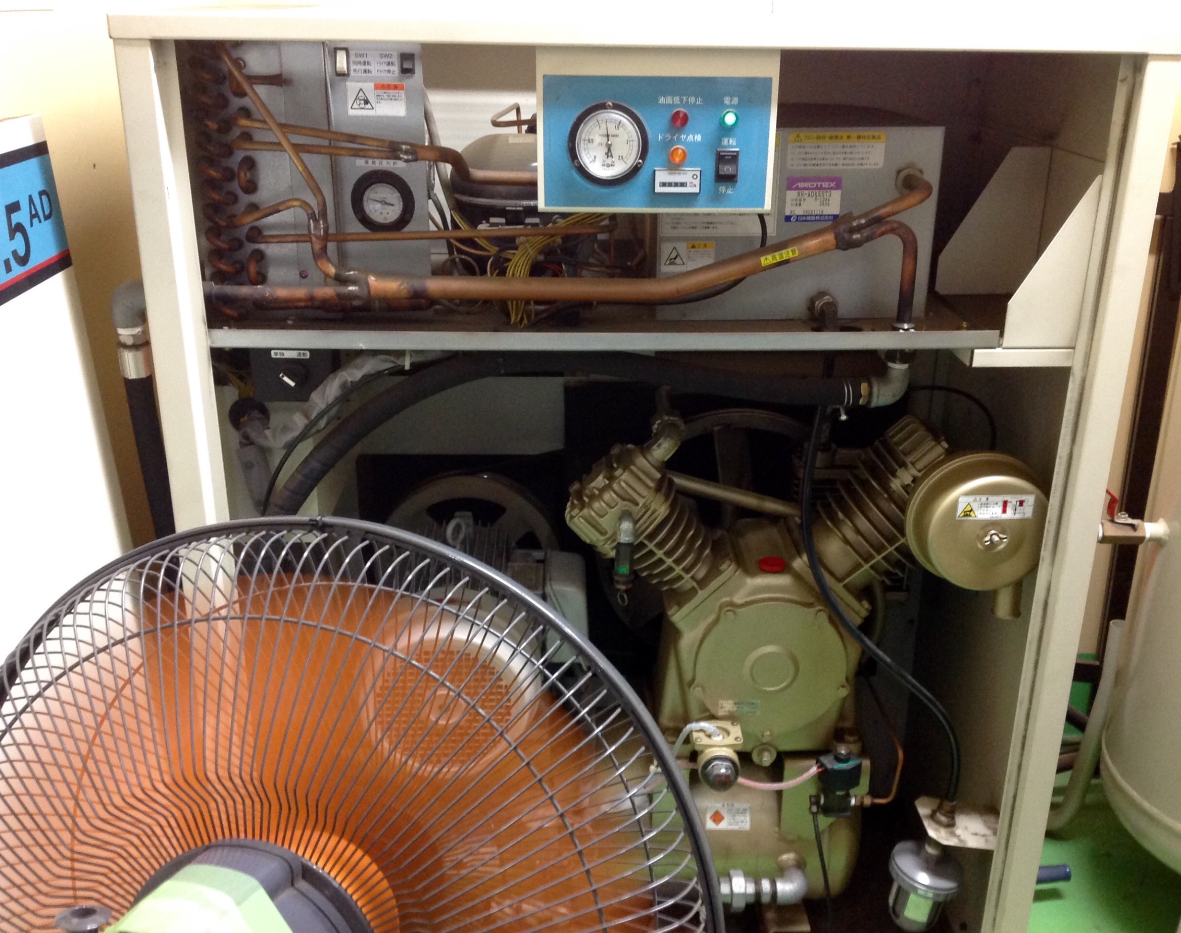 しかし、とうとう最初の犠牲者が出てしまったんです。当店一の働き者であるコンプレッサー君が酷暑に根を上げて職務放棄してしまいました〜