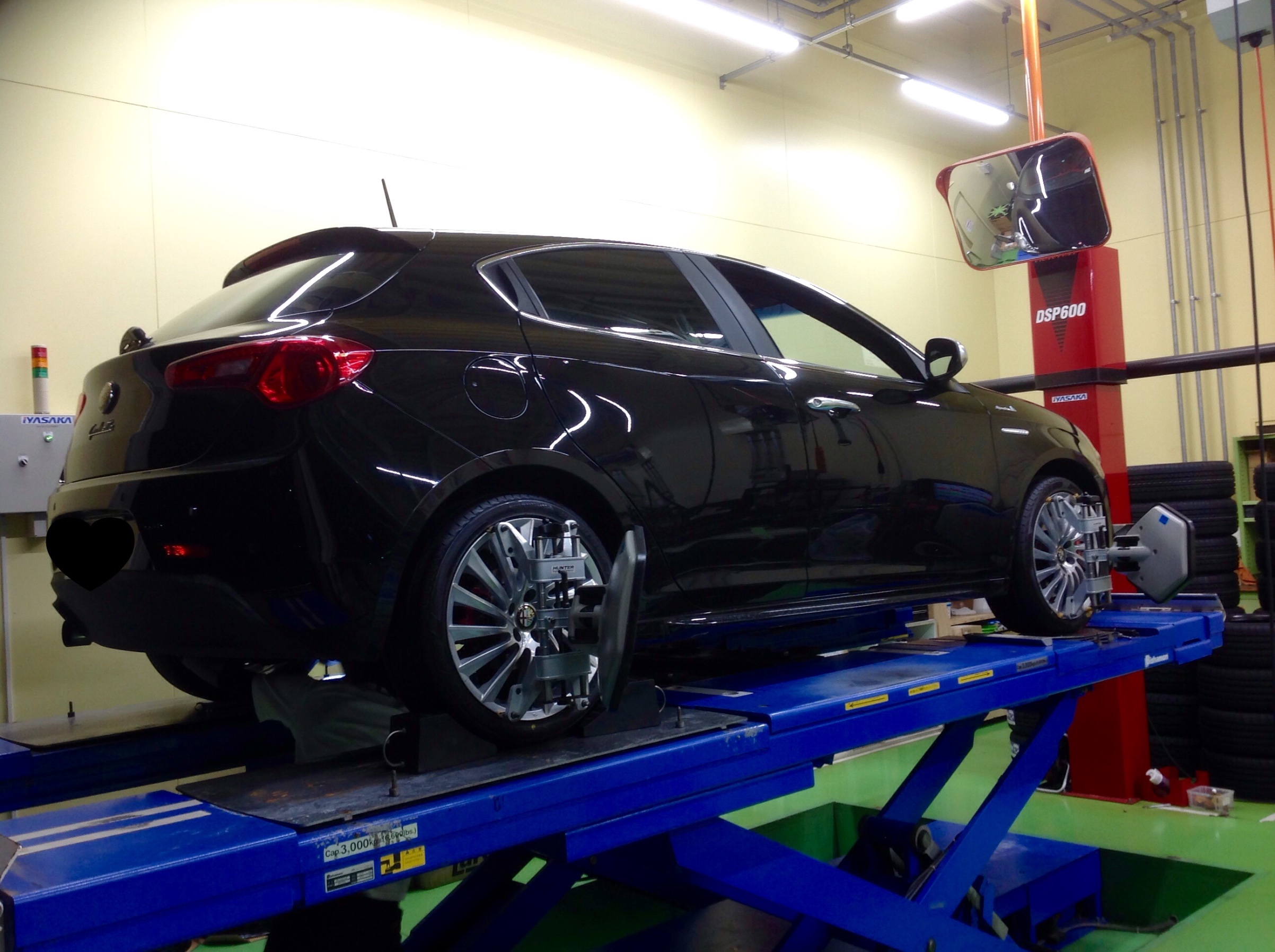 アルファロメオ ジュリエッタのタイヤ交換、ホイールアライメント調整、防錆コーティングを行いました