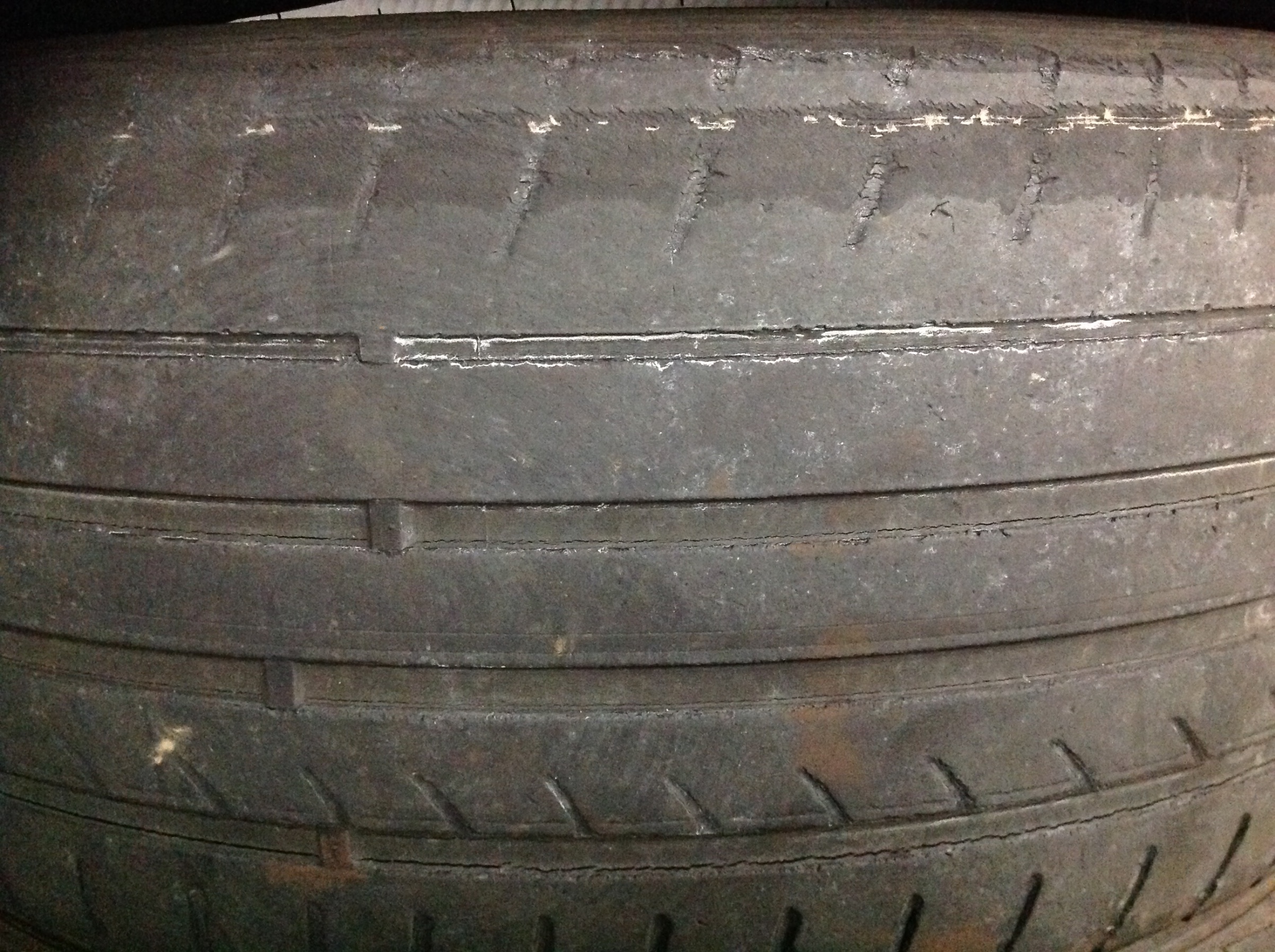 外したタイヤの溝の減り方がおかしかったのでアライメントを測定させていただいたところ、予想通りズレていたので適正値に調整させていただきました