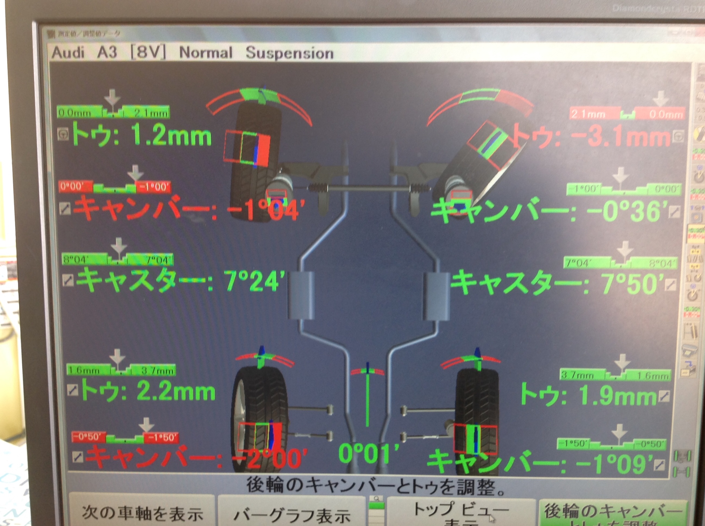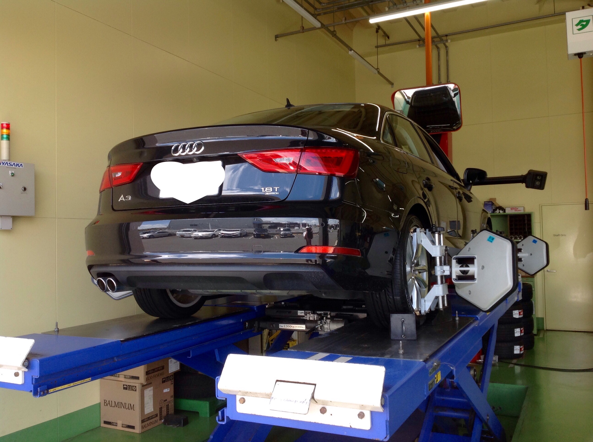 アウディ A3のホイールアライメント調整を作業させていただきました