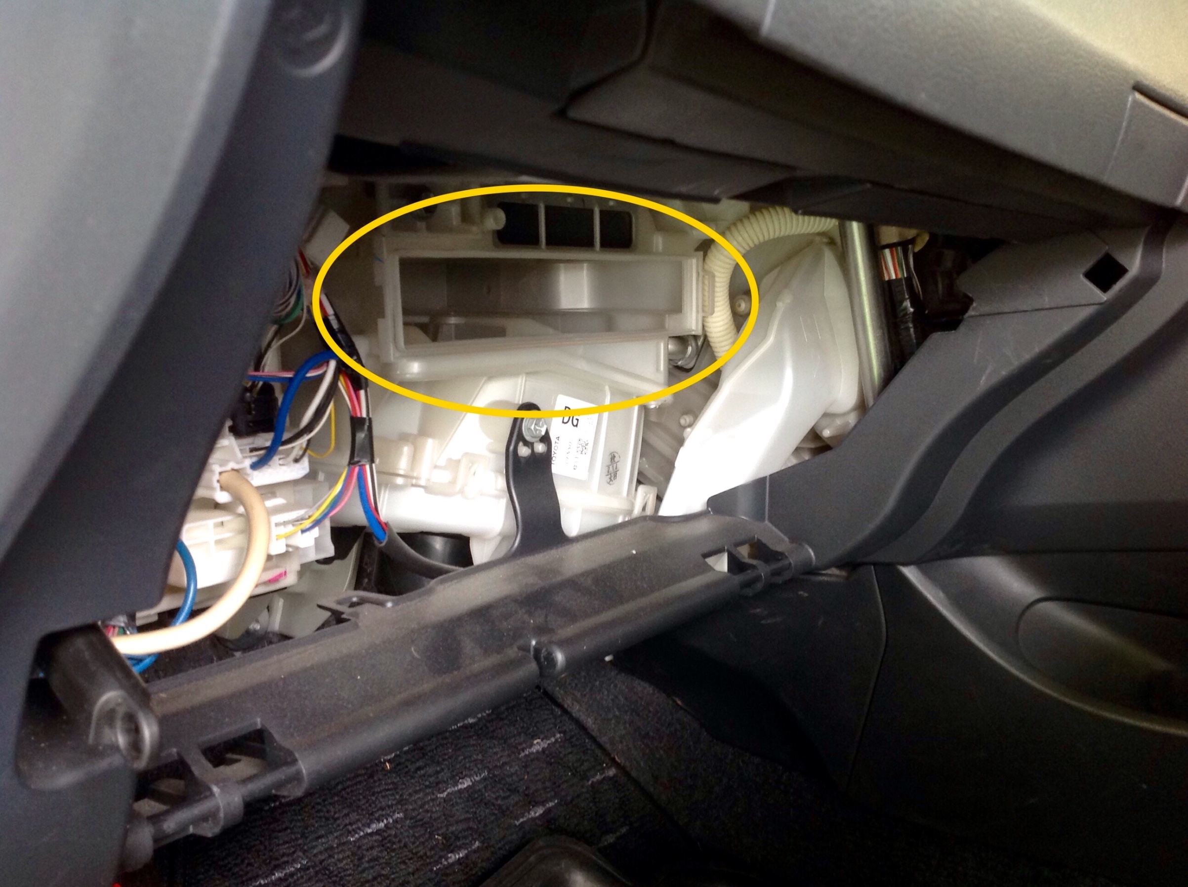 トヨタ車は助手席のグローブボックス奥に取り付ける車種が多いので5分くらいで交換可能です(一部車種を除く)
