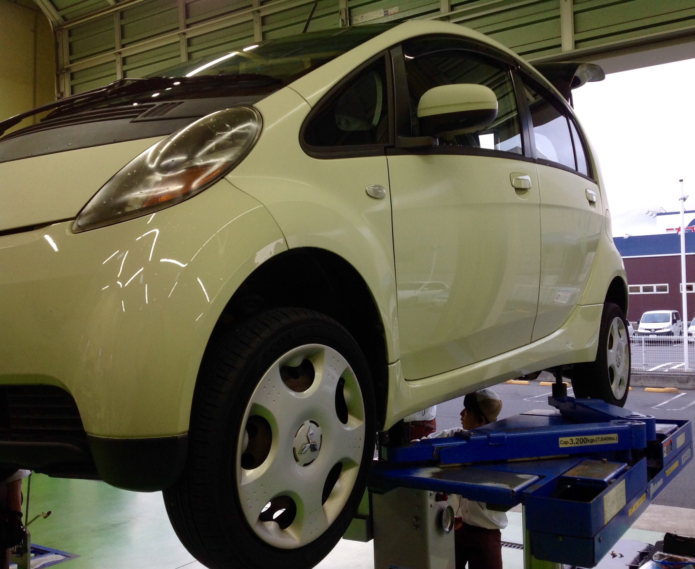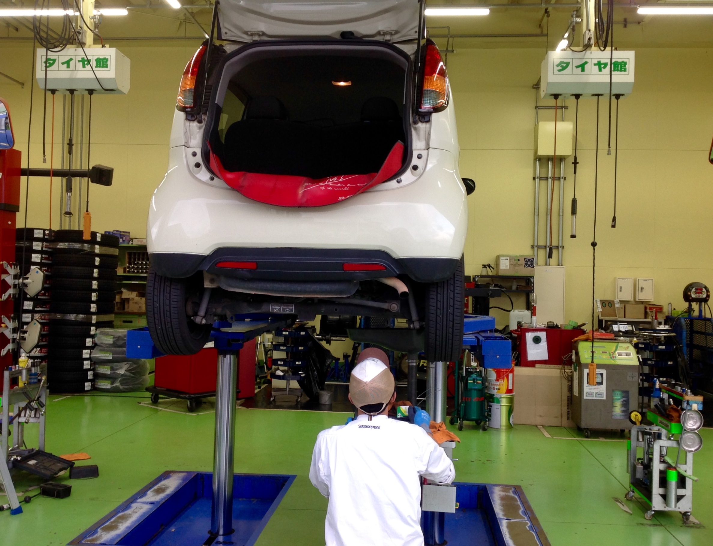 エンジンは後ろに搭載されているのでテールゲートを開けて作業します。