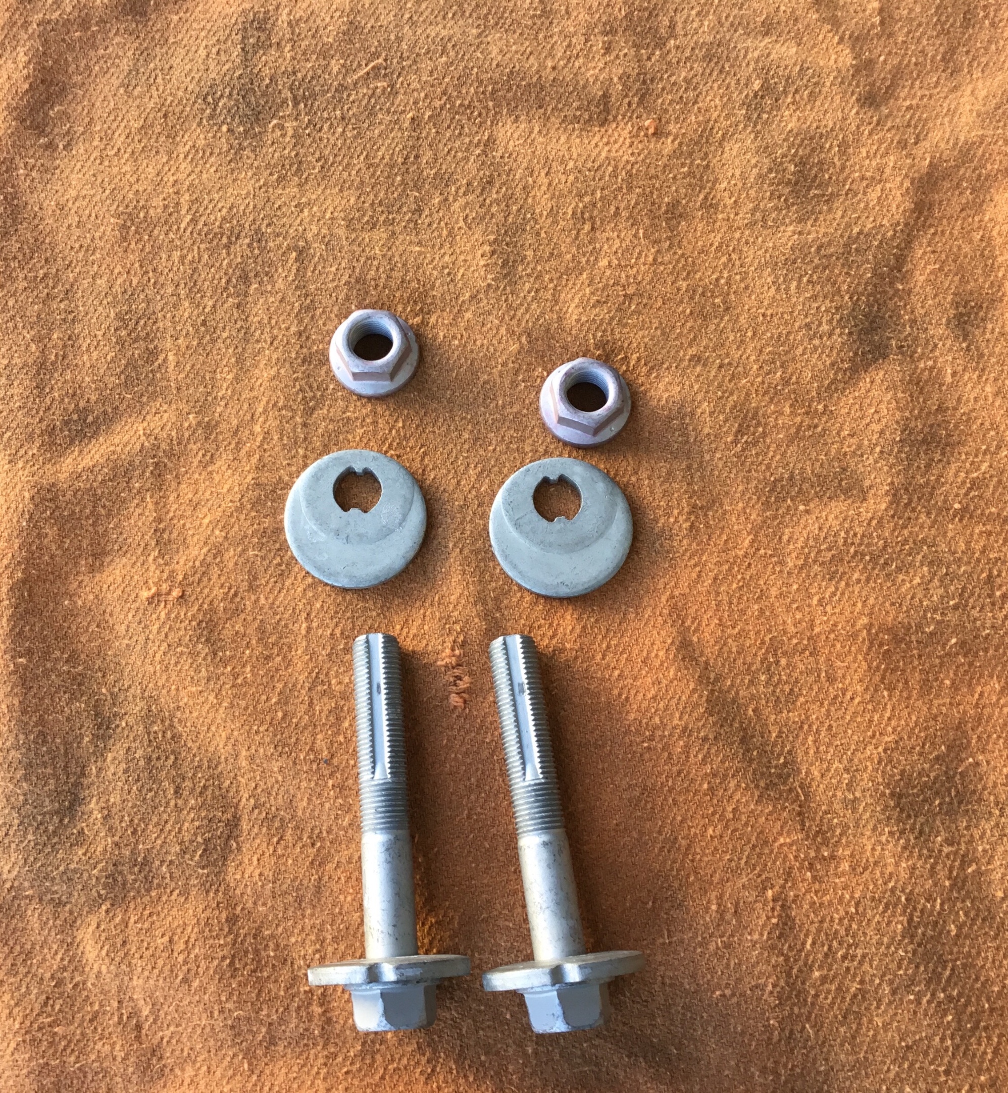 フロントのトーはタイロッドという部品を長くしたり短くしたりして調整するんですが、リヤのトーを調整する時に使うことが多いのが偏心カムという部品です。(車種により調整方法は異なります)