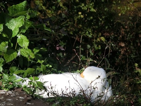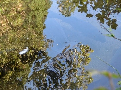 白い羽が水面に浮かんでいたのですが、