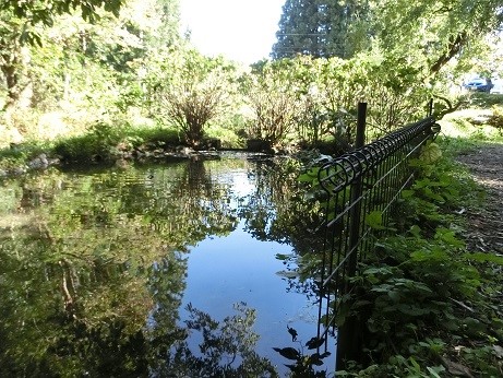 店舗の裏手に小さな池がありました。