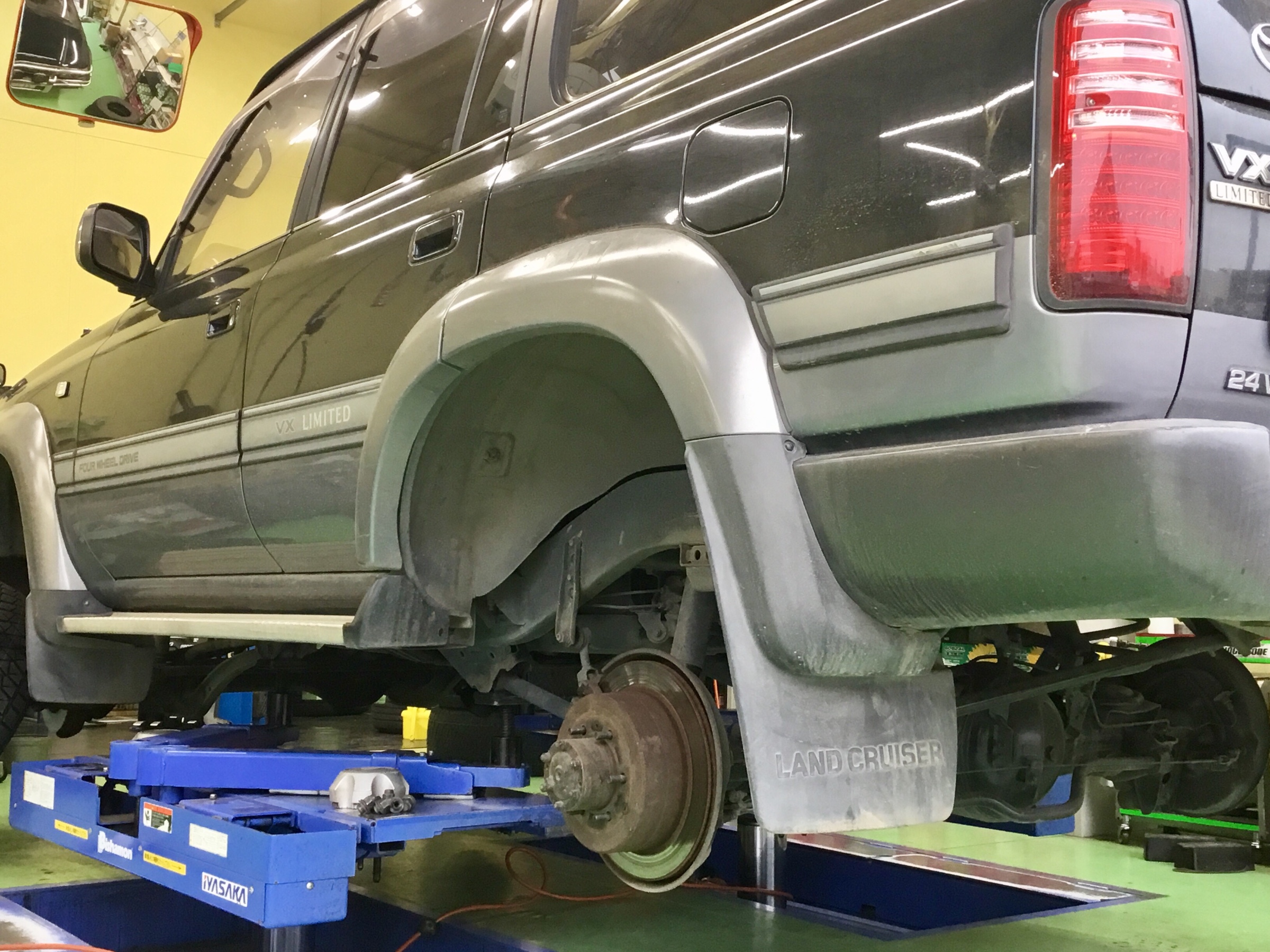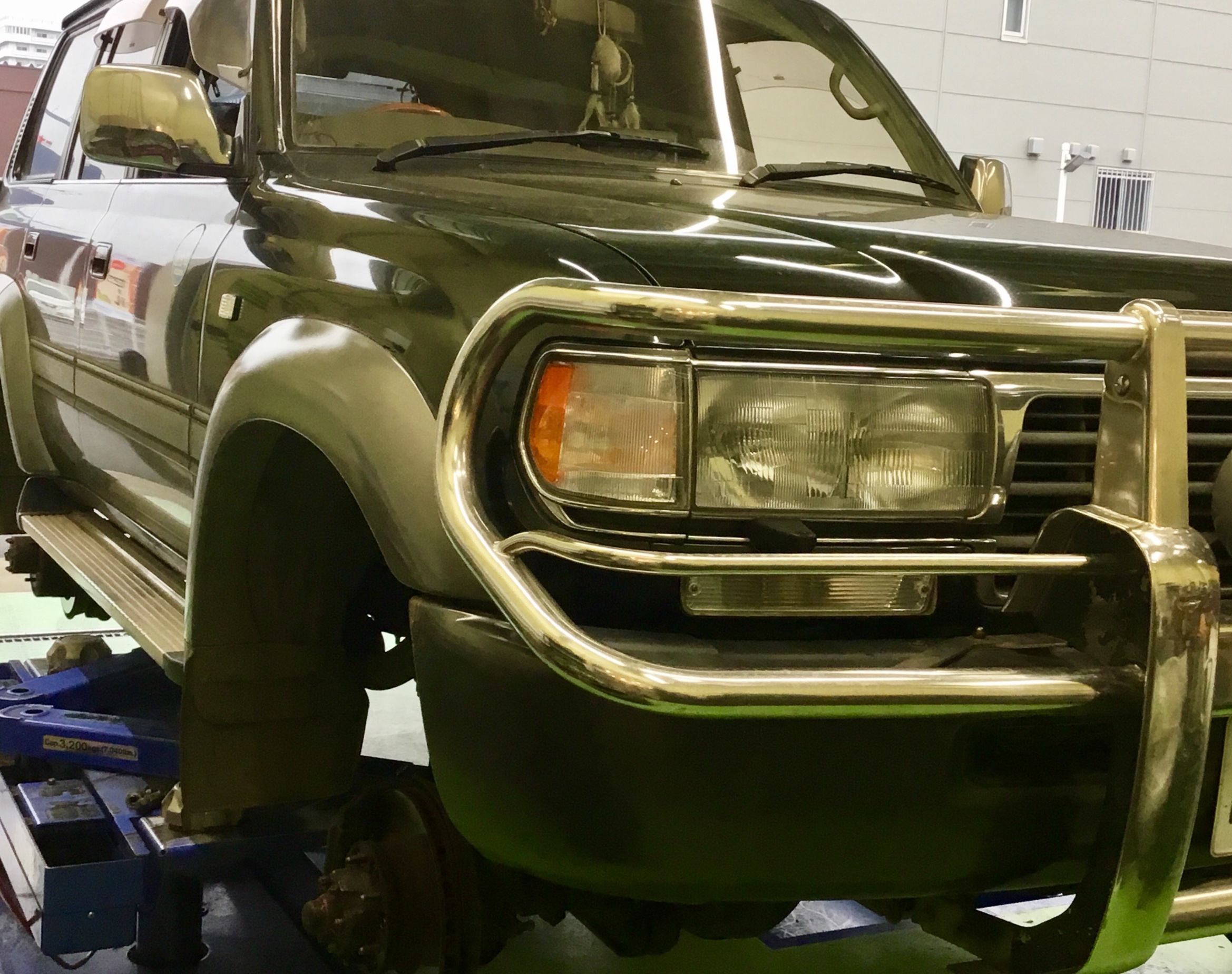 トヨタ ランドクルーザー(80系)のスタッドレスタイヤ交換を作業させていただきました。