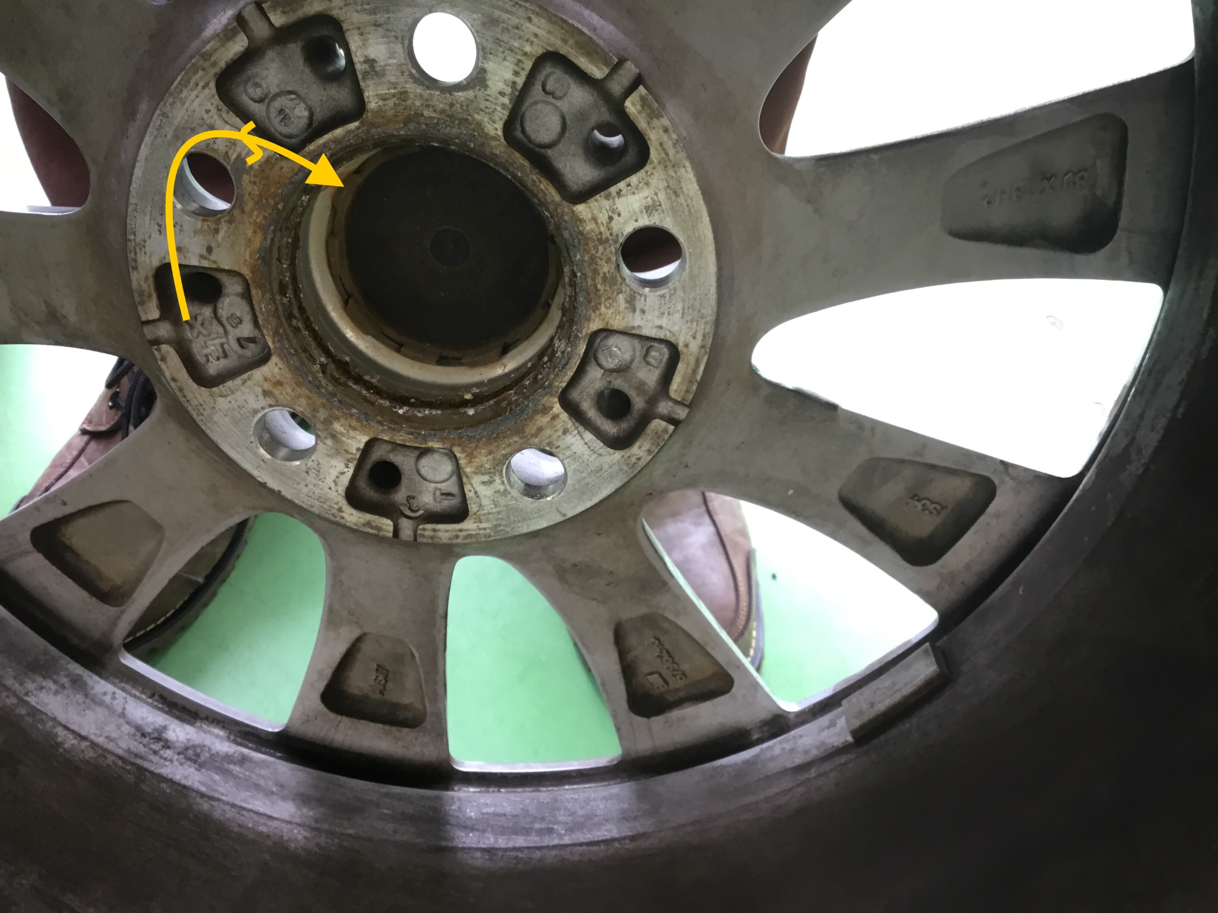 錆びている部分とホイールの真ん中がピッタリとハマるので、錆びが進行すると固着してホイールが外れなくなってしまいます(^_^;)
