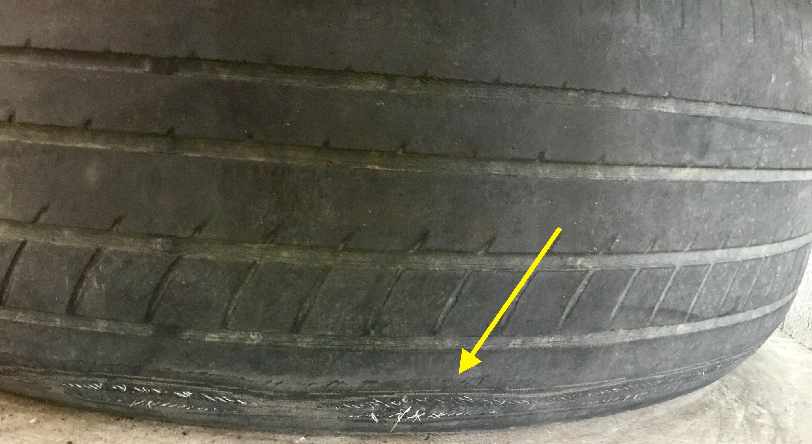 トーアウト状態で走行するとタイヤがこのように減ってしまうんです。
