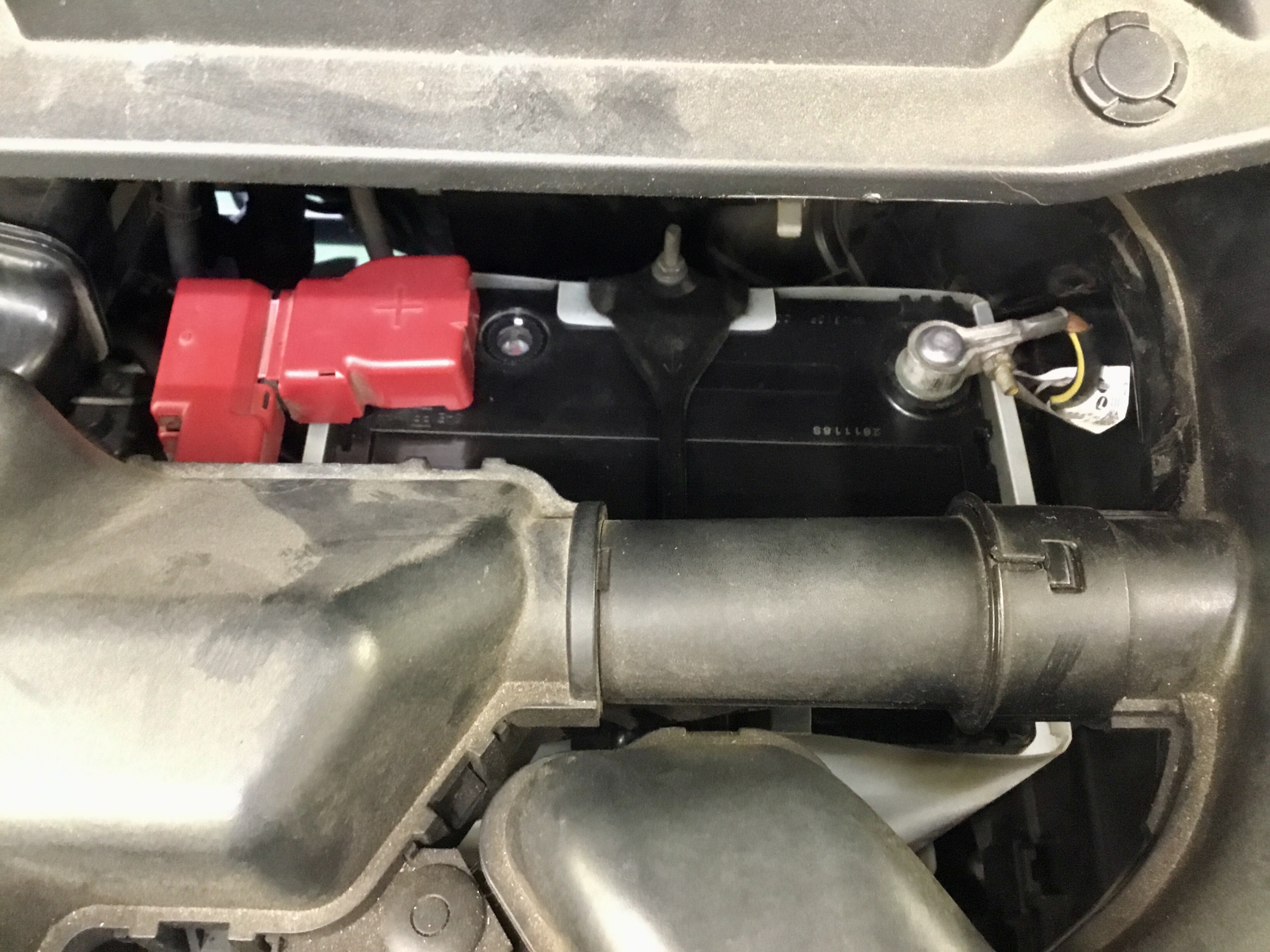 エアダクトを外した奥にバッテリーが設置されており、サイズも大きいので交換時は腰に気を使います(・_・;
