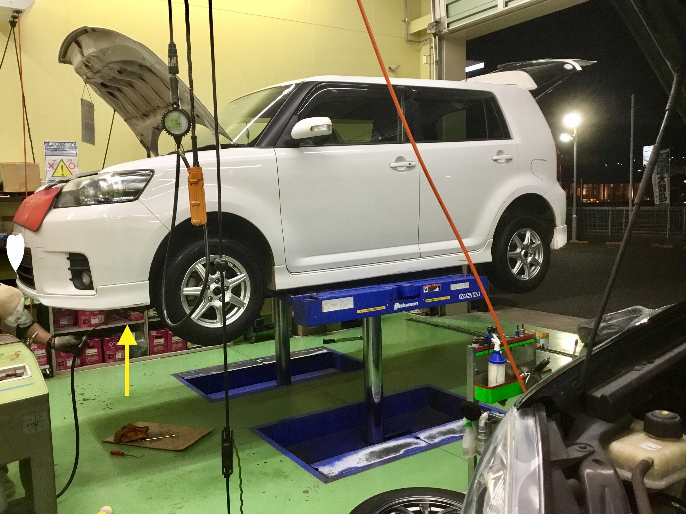最近の車種は以前のようにエンジンルームに量を見るレベルゲージがないので下側から交換させていただきました。