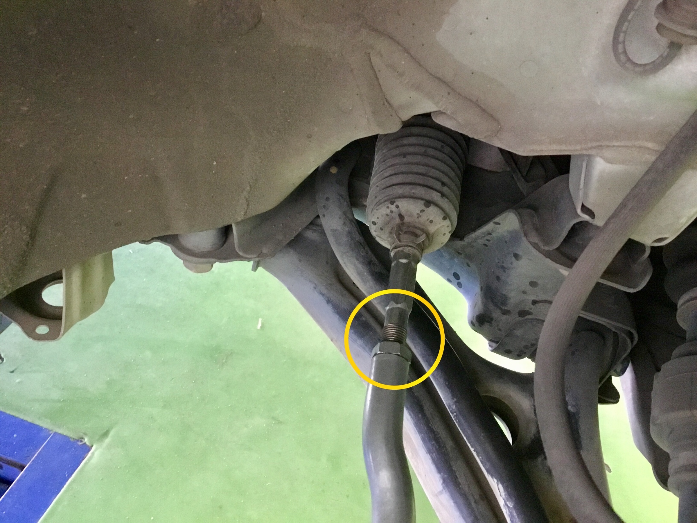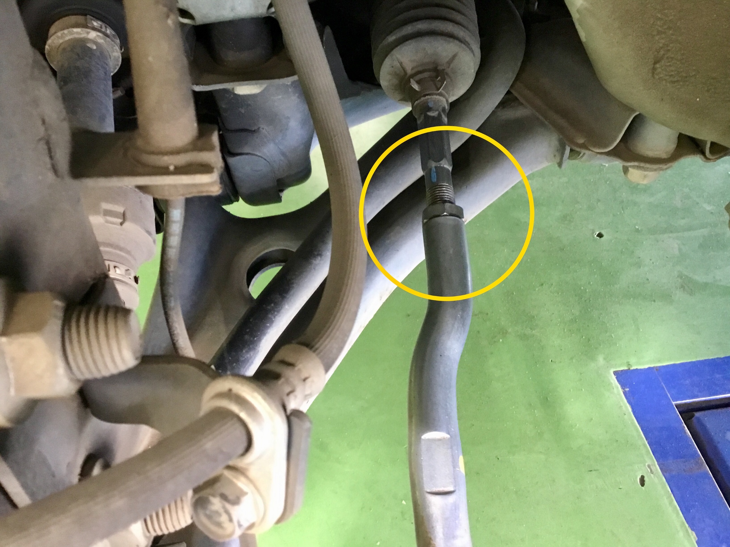 タイロッドという部品の長さを変更することで調整します。