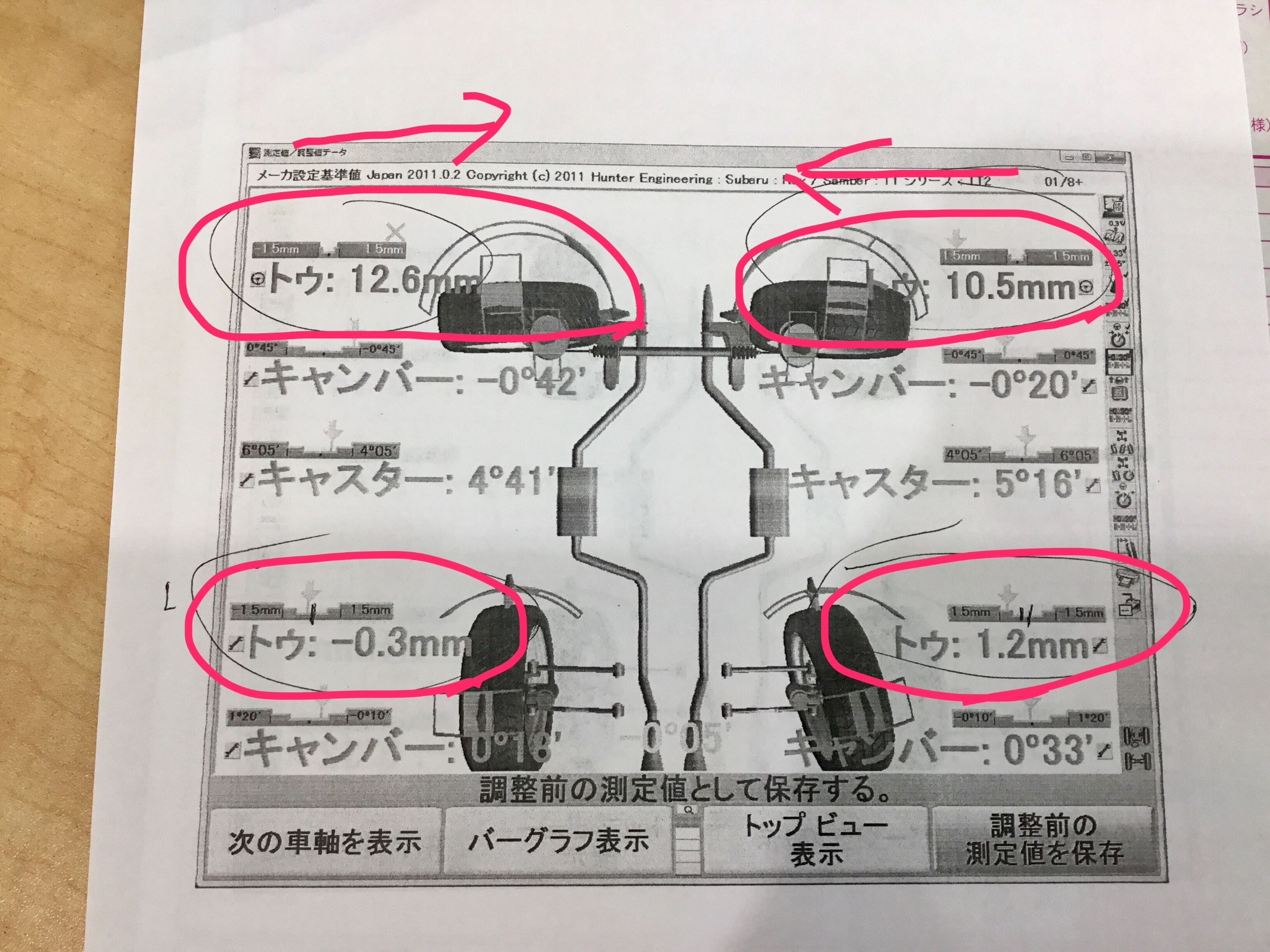 oh…フロントのタイヤが大胆に内側を向いてしまうほどのズレです( ゚д゚)