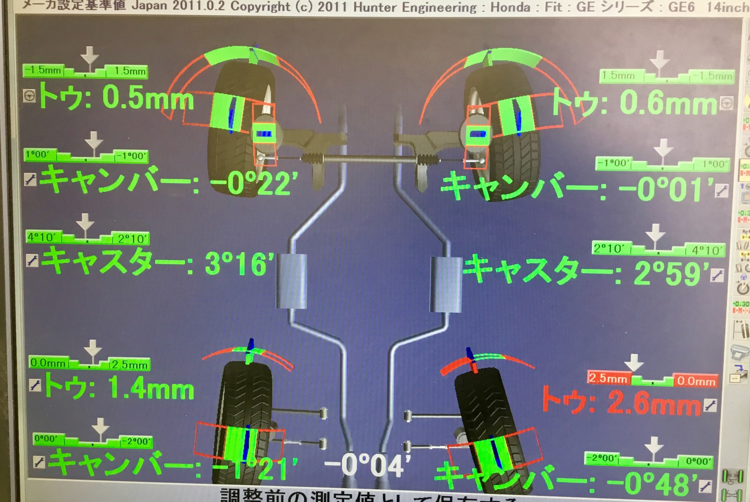 タイヤ交換後はアライメント測定を行いました。