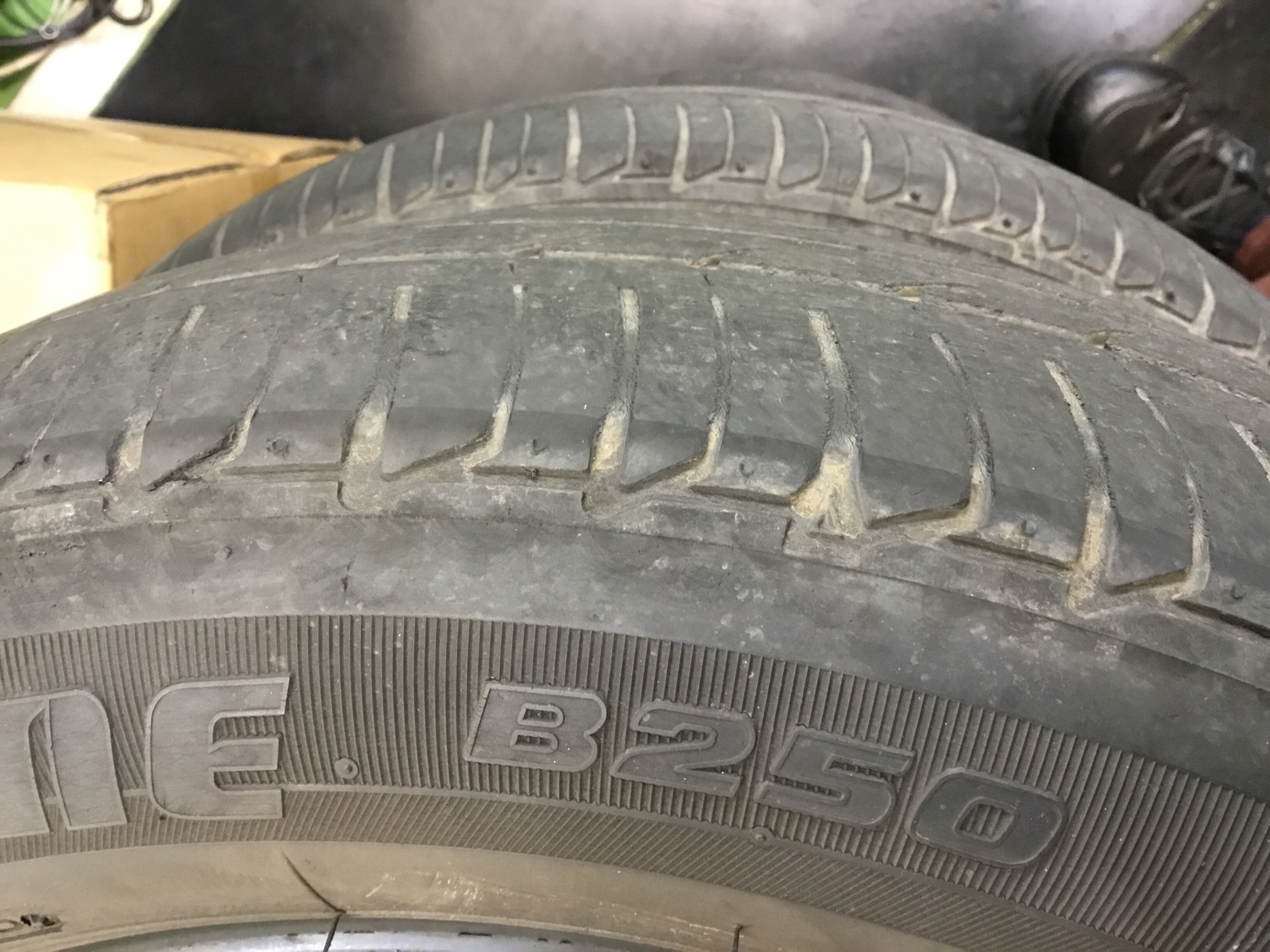 交換前は新車時装着のブリヂストン B250を履いていましたが、溝がすり減って限界を迎えていました。