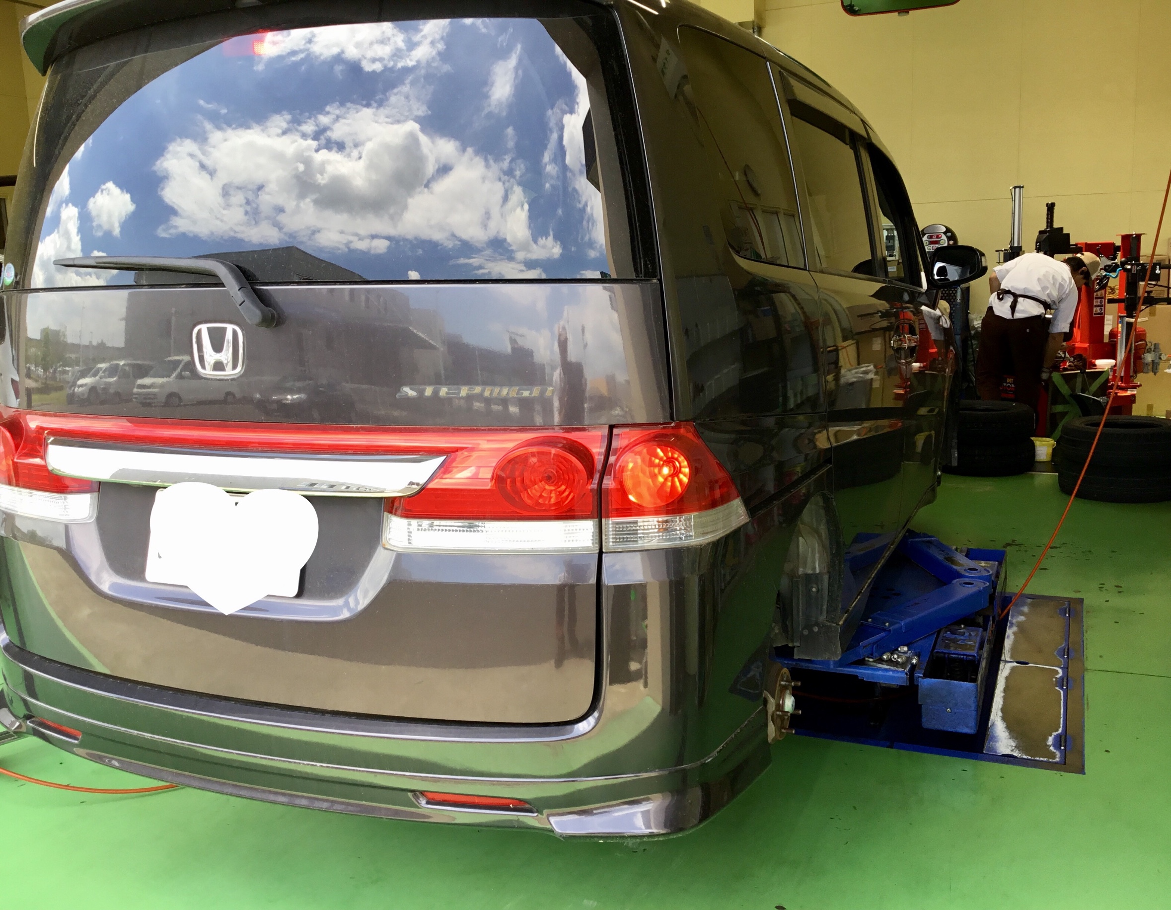 ホンダ ステップワゴン(RG1型)のタイヤ交換&アライメント調整を作業させていただきました。