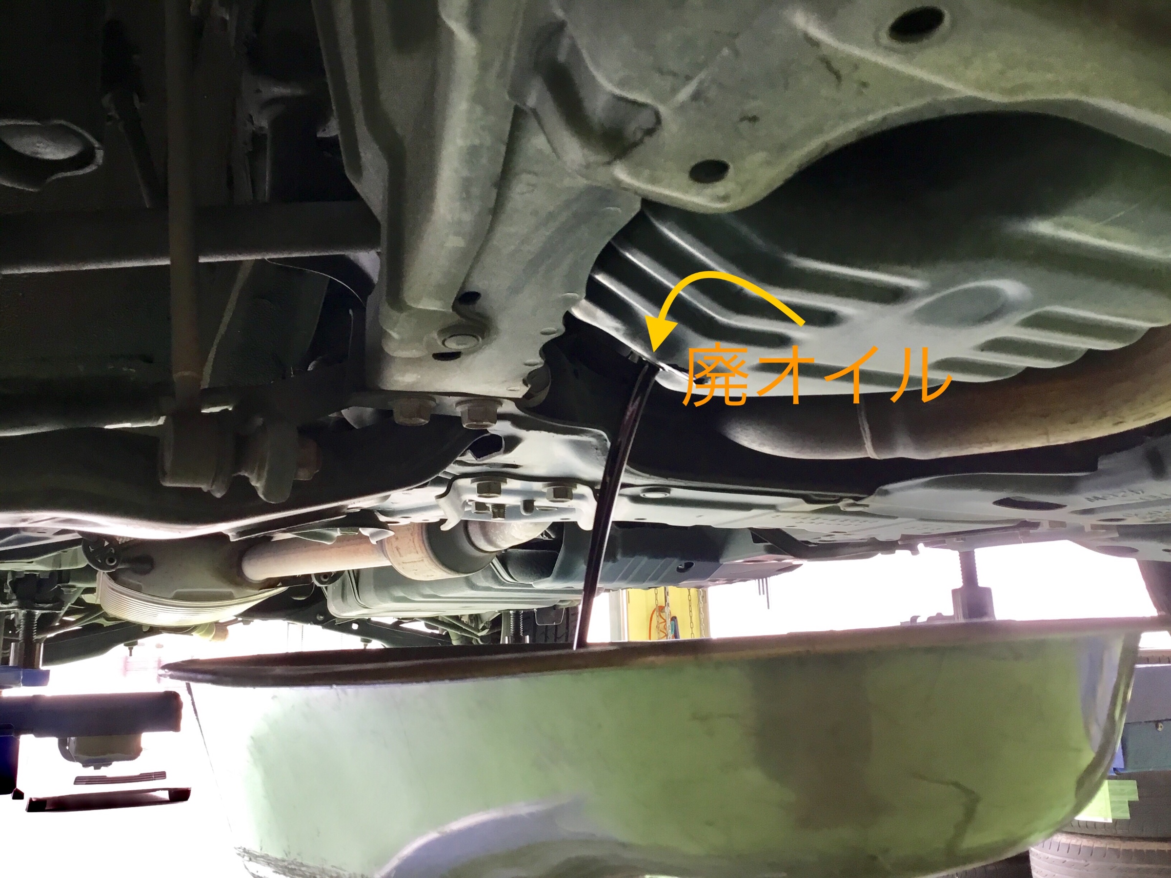 こちらはオイルはチェンジャーという機器でして、オイル量を点検するレベルゲージが取り付けられている部位からチューブを差し込んで廃オイルを抜き取ります。