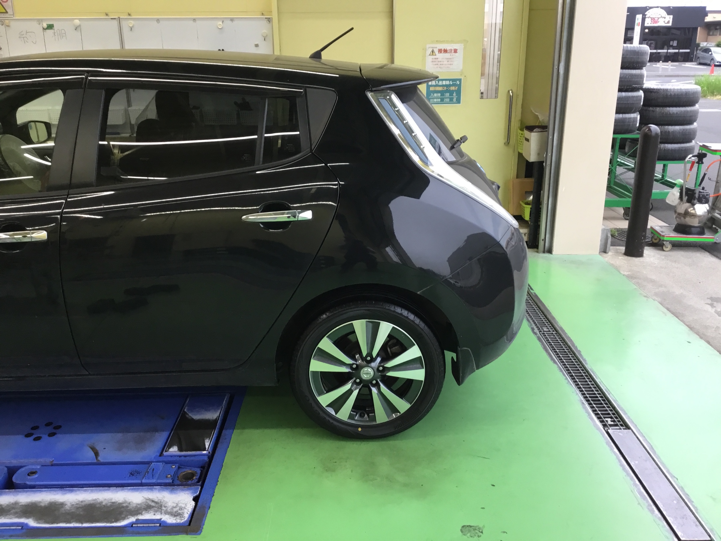 日にちは遡りますが、日産の電気自動車、リーフのタイヤ交換を実施致しました。