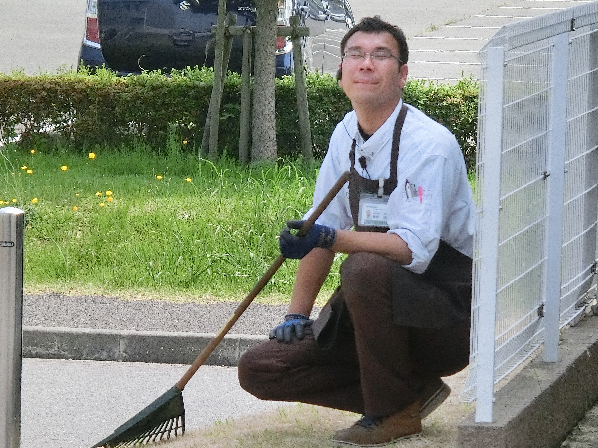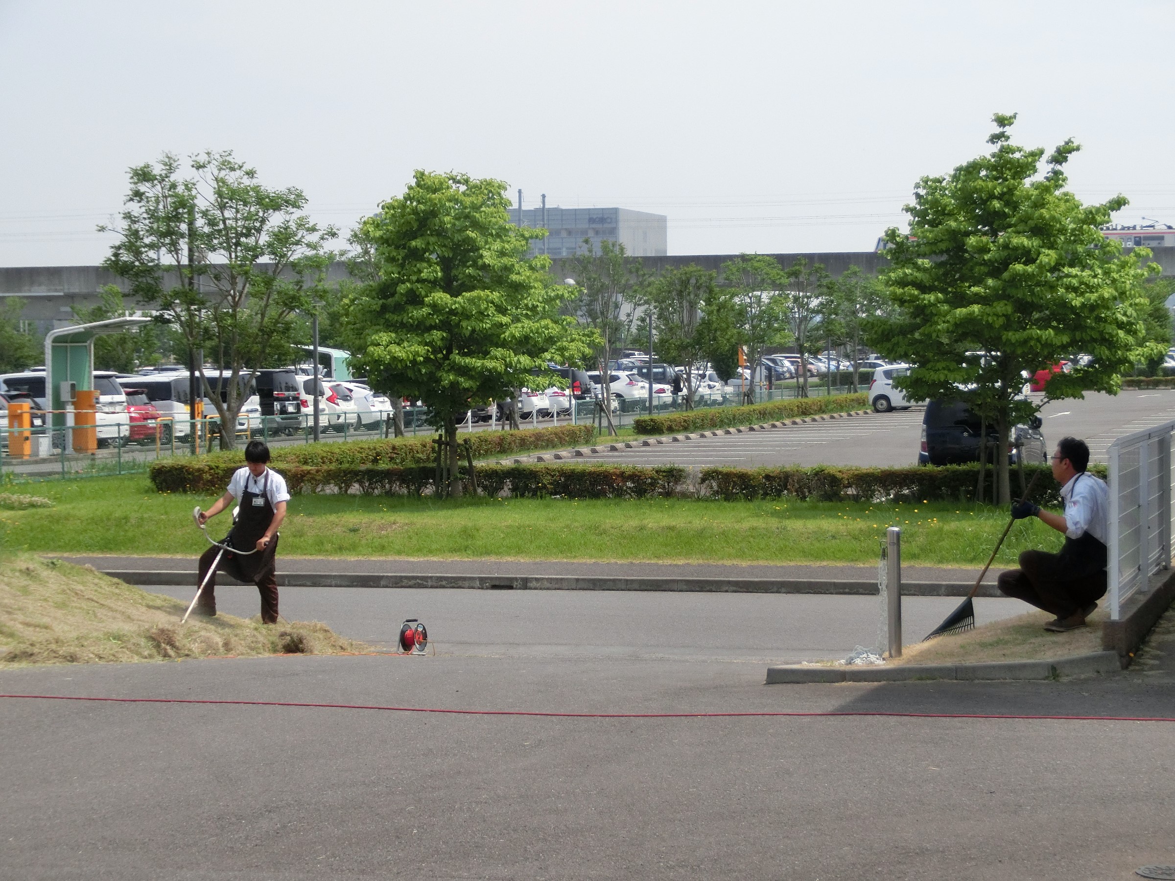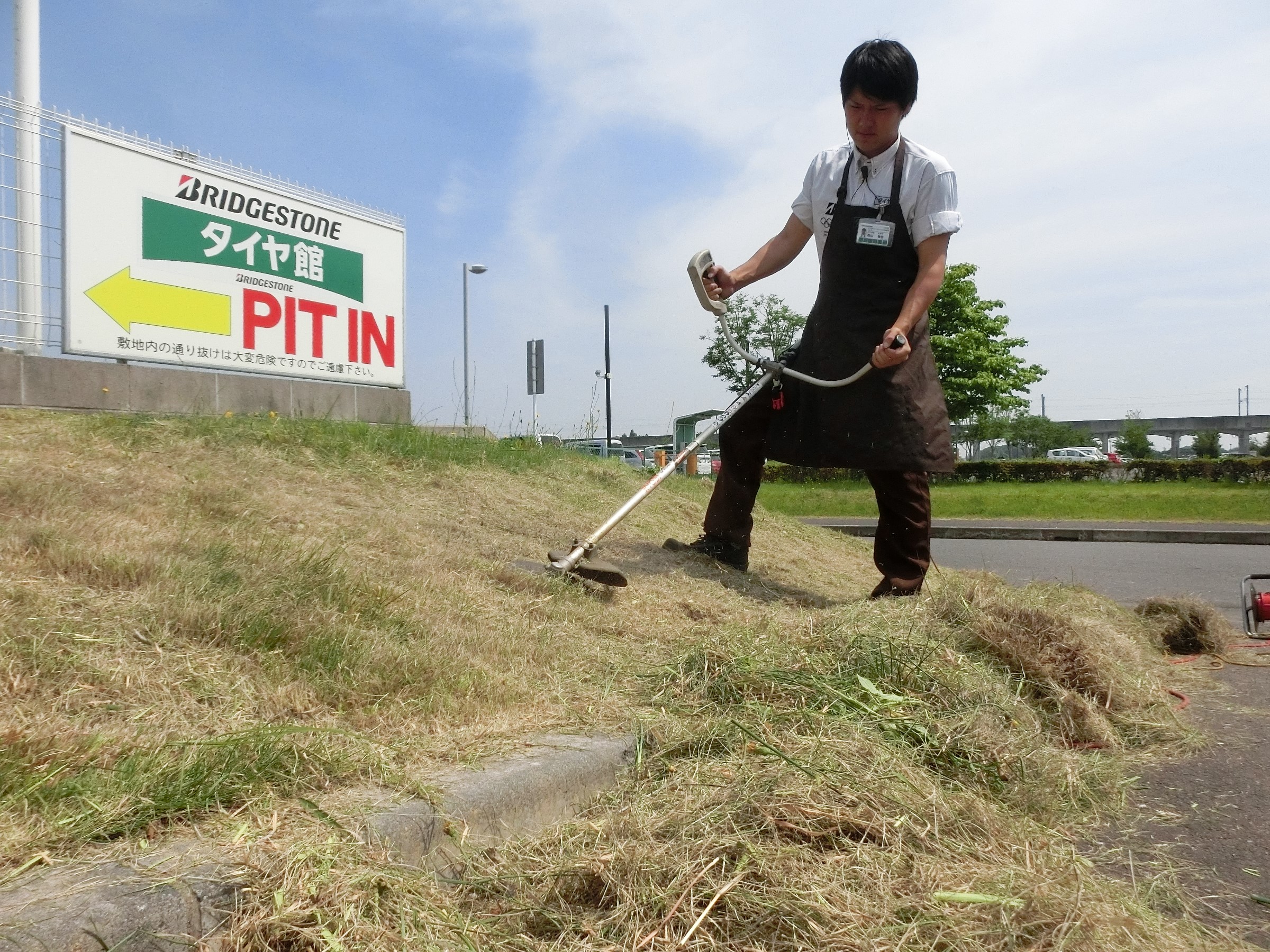 当店の美化委員が店舗裏手の草刈りをしていました。