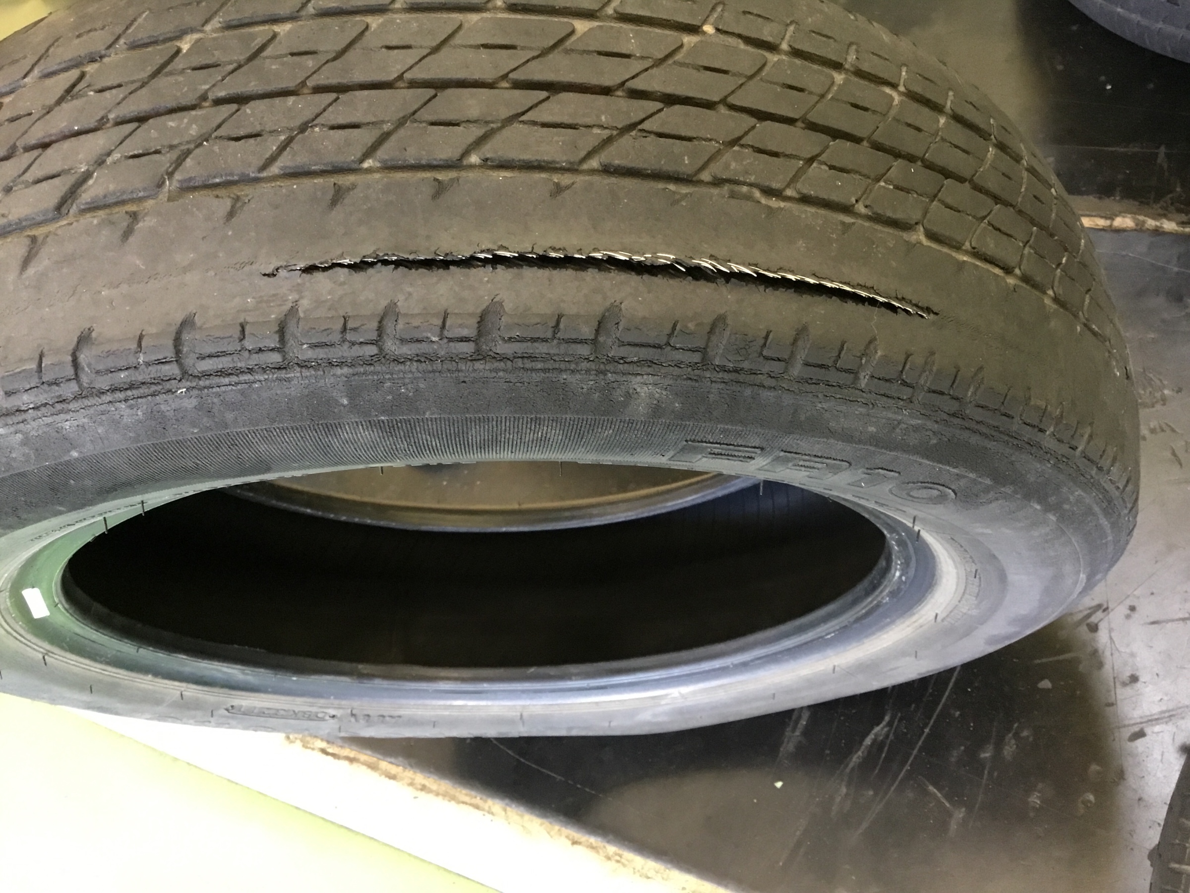 また、見ていただくと分かると思いますが外ベリが目立ちます。このように溝のない状態で走行してしまうとパンクの原因にもなってしまいます。
