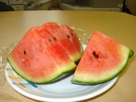 小玉なので、食べやすいし、とっても甘くてみずみずしくて、大変おいしゅうございましたぁ