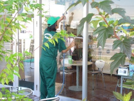 今日は、炎天下の中店内の一部の植物を日光浴☀
