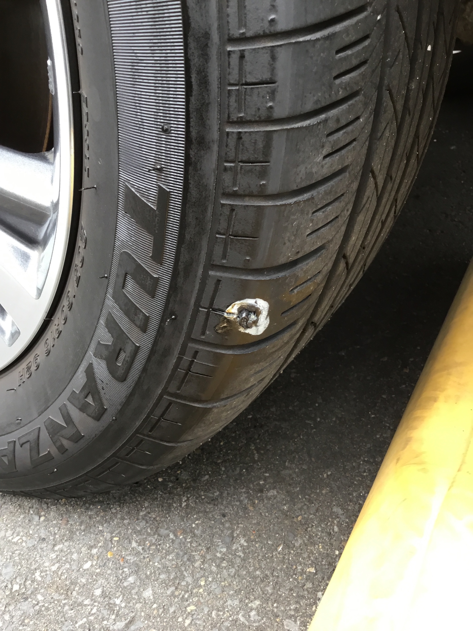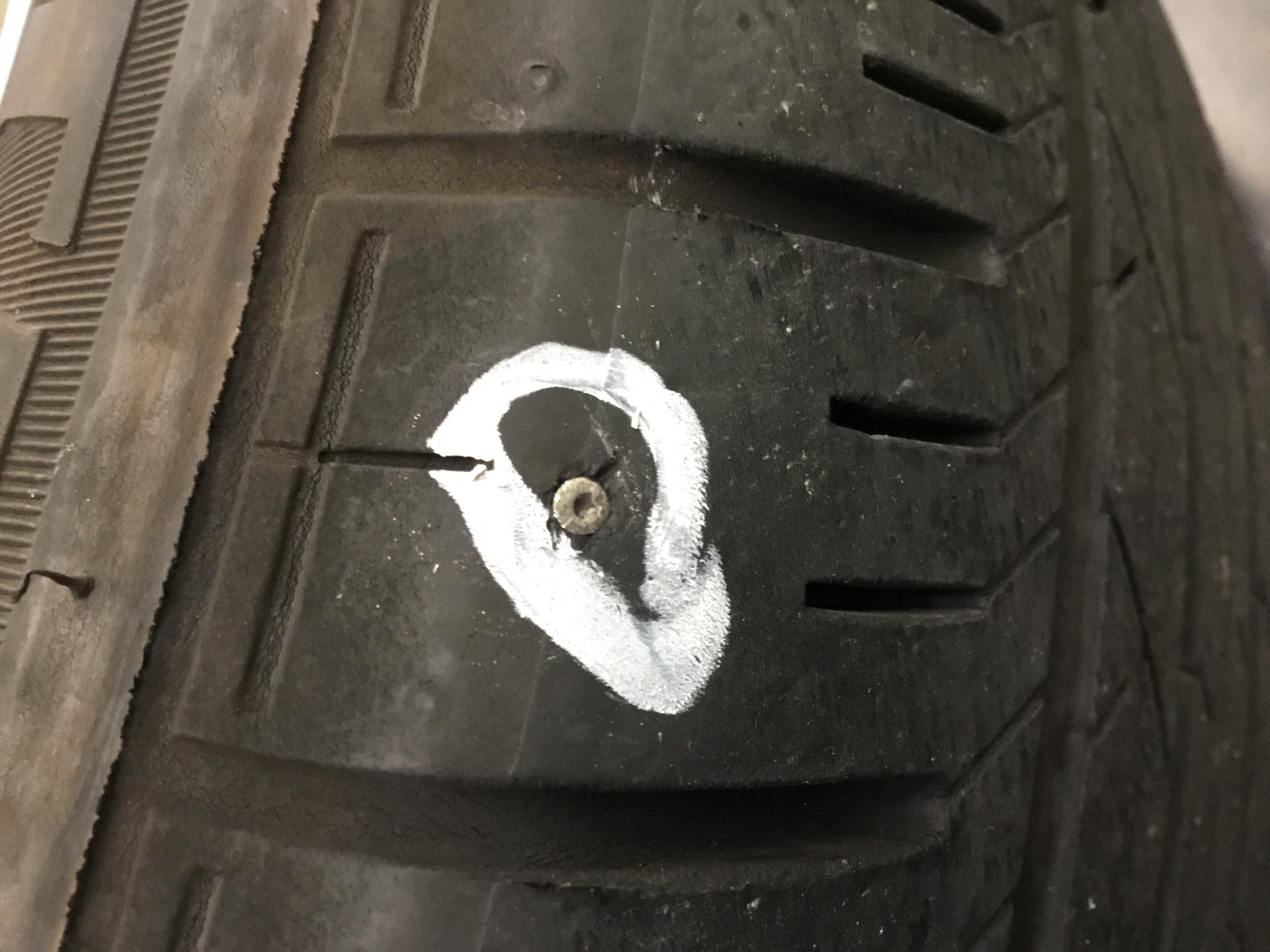 その時左のフロントだけしぼんでいました。タイヤをよく見ると小さな釘が刺さっていました。