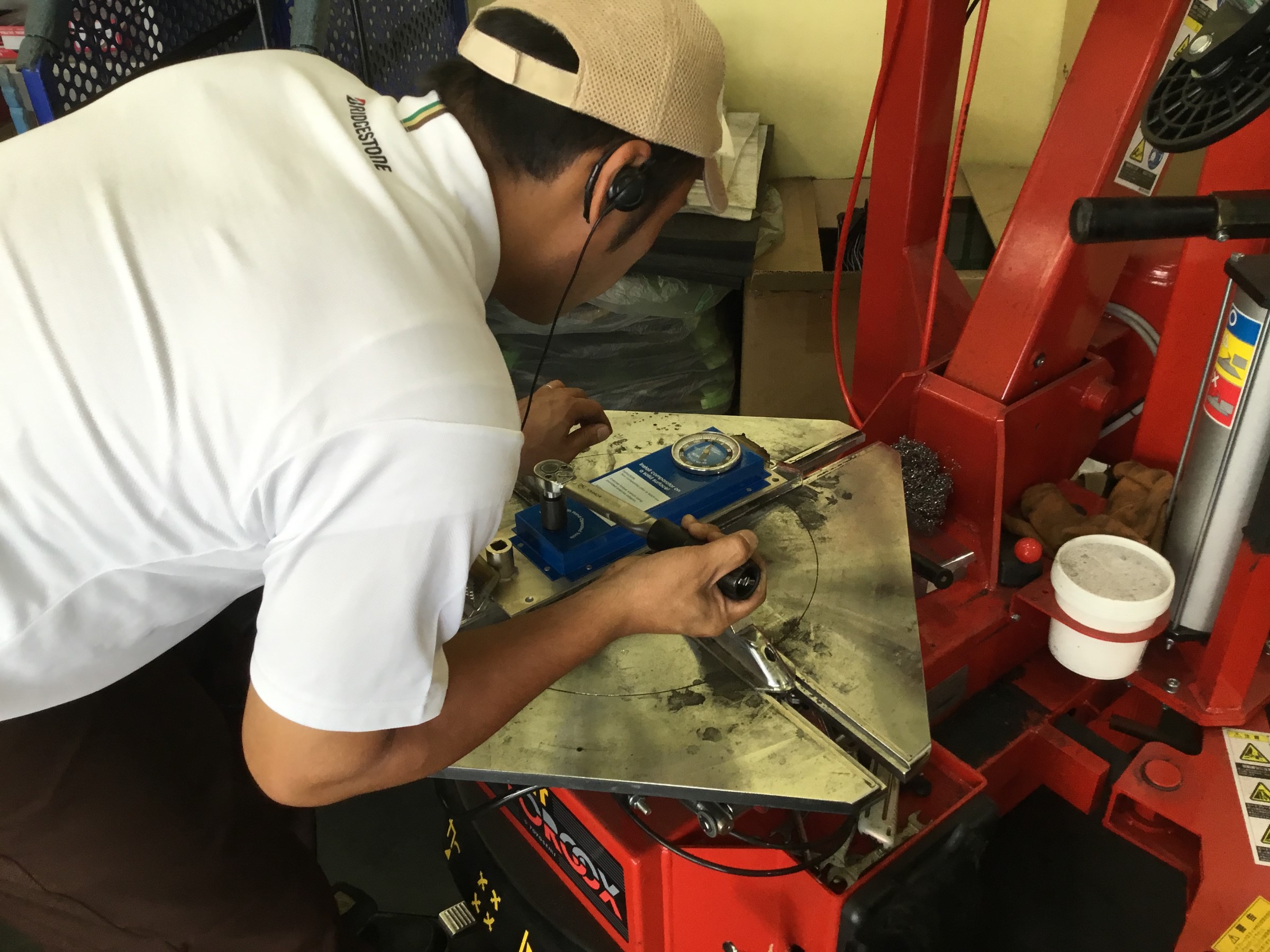 いつもはホイールを固定するタイヤチェンジャーで
