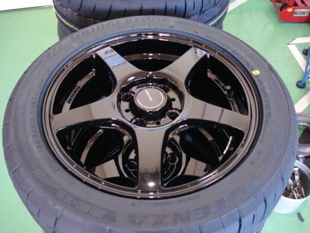 POTENZA RE-11Aにブリヂストンの新商品のホイール『ECO FORME forged S』のお色はピュアブラックを3台分の組替・バランス・脱着です。