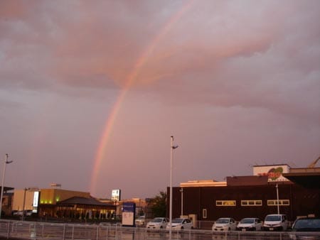 くっきりとした虹ですよヽ(^o^)丿難しくて虹の全体は撮れませんでしたが、くっきりとした半円だったんですよ☆ご覧になられましたか???