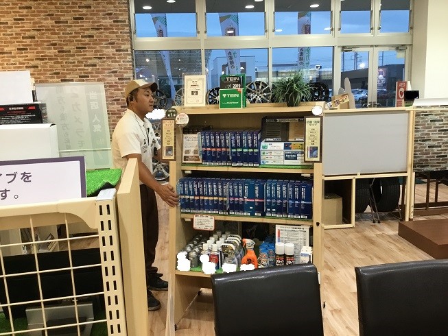 タイヤだけでなく、メンテナンス用品のコーナーなども
