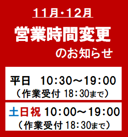 11月~12月の営業時間変更および、