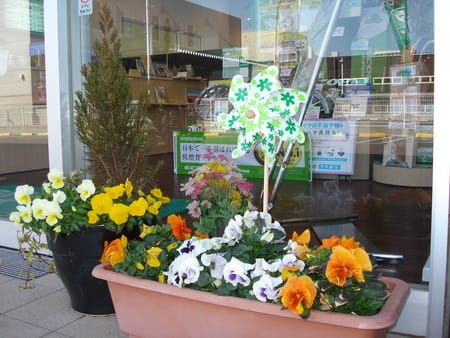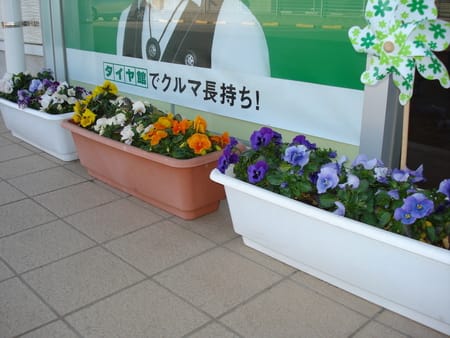 5月くらいまではこのパンジーで店頭のお出迎えをしようと思ってます。その後は、もちろんペチュニアを植える予定です(^^ゞ