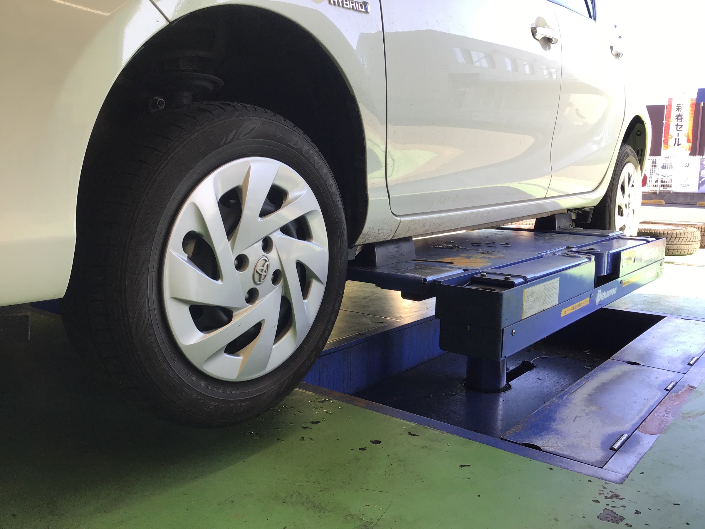 画像はアクアの作業ですが、SUVやフルサイズのミニバンになると浮かせ方がまた違ってきます!