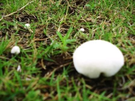 毎年、このじめじめした梅雨に必ず裏の芝生に出てくる、名前も知らない『きのこ』と思われる白いの。