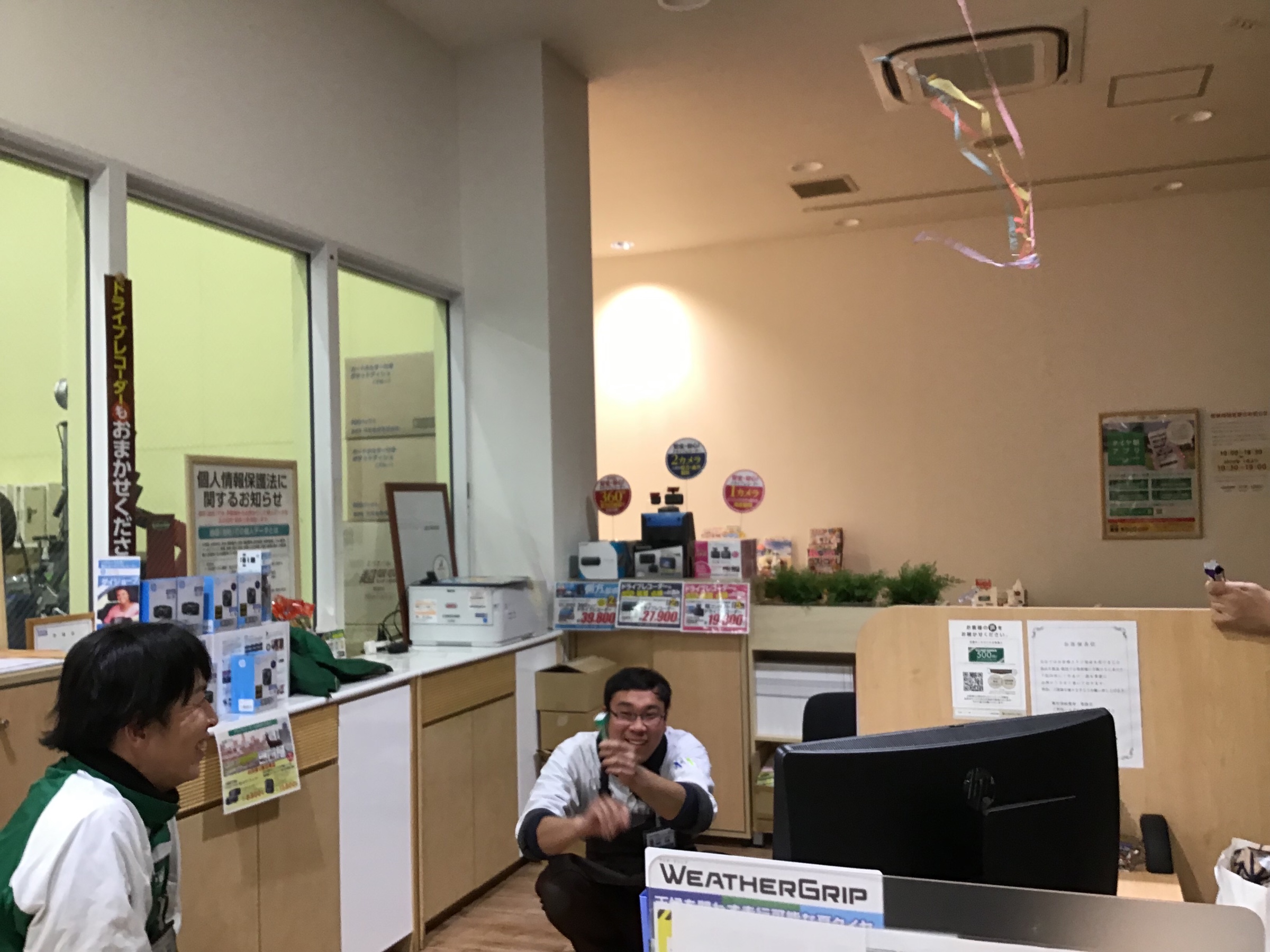 今月、我らが吉澤店長の誕生日で、クラッカーをやりました^_^
