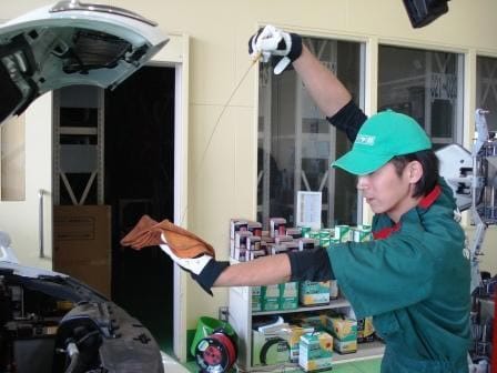 当店ではオイル交換作業後、お客様にお車をお引き渡しする際はスタッフとお客様立ち会いのもと、この『油量チェック』を行っております!!