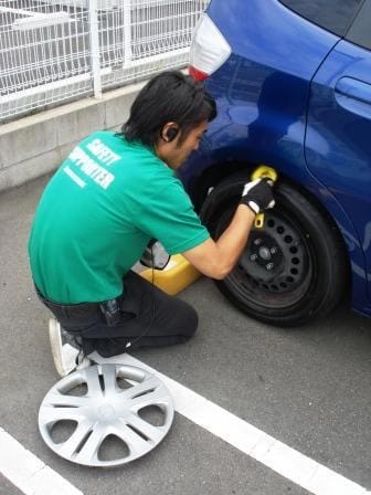 ナット増し締めの様子は撮り逃してしまいましたが、空気圧点検&タイヤワックス掛けは何とか撮影に成功しました!!