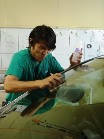 今日は、フロントガラス撥水作業真っ只中のでーやん激写☆