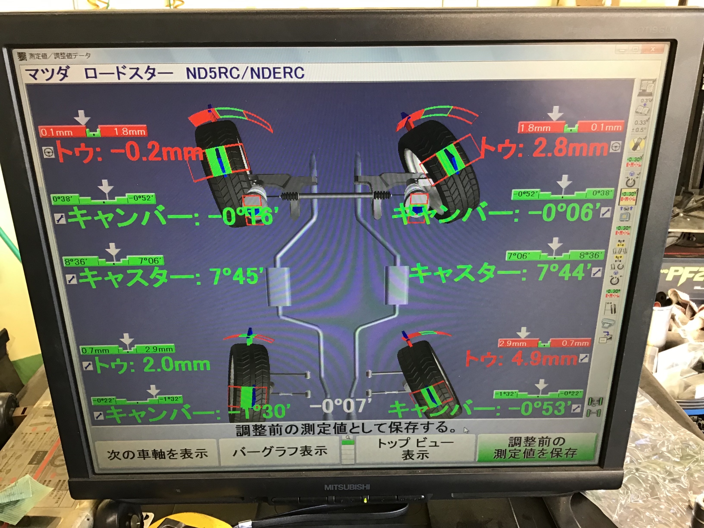 調整しているところと調整後の数値を撮り忘れてしまいました(汗)