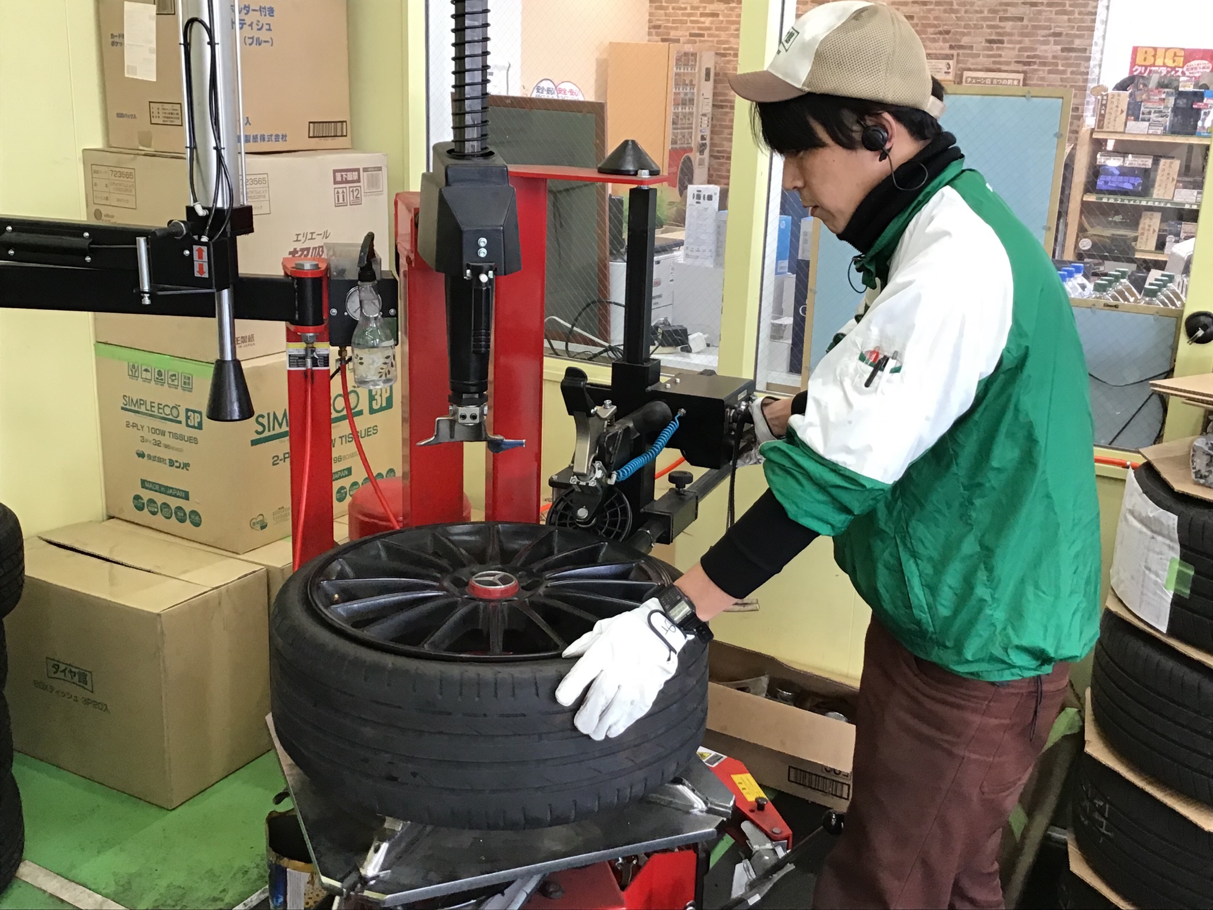 吉沢店長がホイールを傷つけないよう、