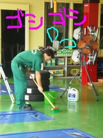 今日の『じゅんじゅん』ことボーイは、ピット床の汚れが気になったのか一生懸命デッキブラシで磨いております!