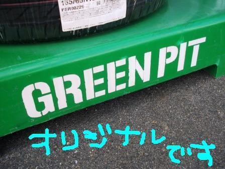 その、ホイールセットが乗っている緑色の台・・・。我々は『パレット』って呼んでいるのですが、表面に『GREEN PIT』のステンシルが施されております!!