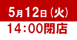 明日5月12日は、店舗棚卸のため14:00に閉店いたします。