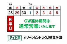 ゴールデンウイーク連休も営業